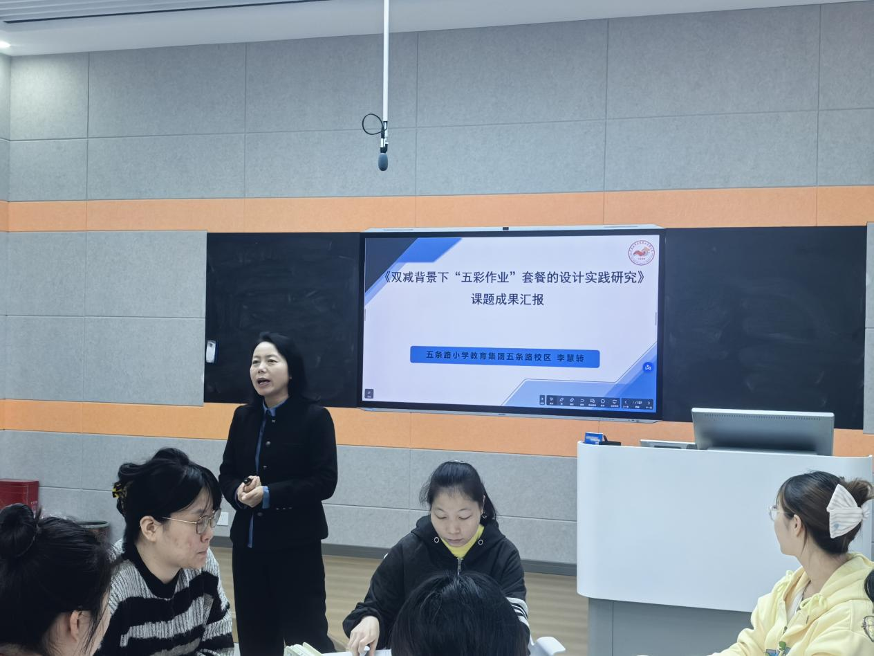 作为一线教育实践者,李慧转导师围绕“五彩作业”设计的核心议题展开授课:从政策支持、存在问题与项目特点切入,结合“学生发展理论、多元智能理论、儿童立场”等教育理念,系统讲解了“五彩作业”的研究目标、学科融合设计路径、实施策略及成果评价方式。课程中,她不仅解析了“知识主题、生活主题、成长主题”等作业设计方向,还分享了“基础作业—拓展作业—高峰攀登作业”的分层设计思路,以及课堂观摩、团队研讨、专题讲座等校本研修方法,为研究生搭建了“理论+实践”的桥梁。