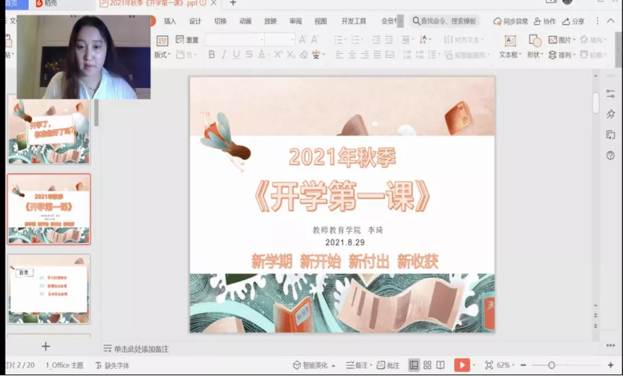 停课不停学,学习不断线。在即将迎来2021年秋季学期之际,为了让同学们在做好疫情防控工作的同时,尽快调整学习状态,规律作息,全身心投入到线上自主学习中,太阳成官网辅导员于8月29日陆续开展线上《开学第一课》主题班会,全体同学参加。