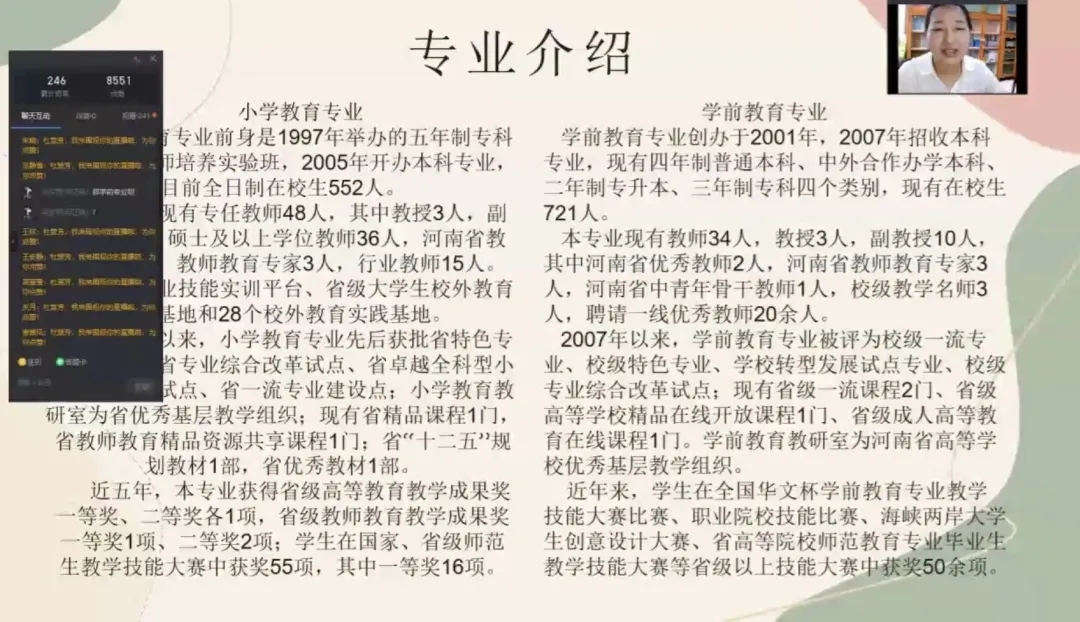 活动伊始,杜老师通过一段视频,加以简短的叙述,准确清晰地让同学们对学校有了一个比较详细的了解。杜老师又分别向同学们介绍了小学教育专业和学前教育专业、太阳成集团tyc9728的领导、各年级辅导员和两位优秀毕业生代表,让21级新生有了对学院概况的初步认识。紧接着,杜老师从坏境、人际关系、学习、经济和心理五方面给同学们讲诉了如何更好的去适应大学生活,给予了“小21们”一定的建议和指导。会议中,杜老师还展示了为同学们设计的心形照片墙,不仅拉进了师生关系,更让同学们对老师和即将开始的大学生活多了一份期待。最后,老师讲述开学准备工作,对新生即将进行的线上学习提出几点要求,帮助新生顺利进行网课学习,又通过分享防诈骗小技巧,呼吁大家保护财产安全,提高安全意识。