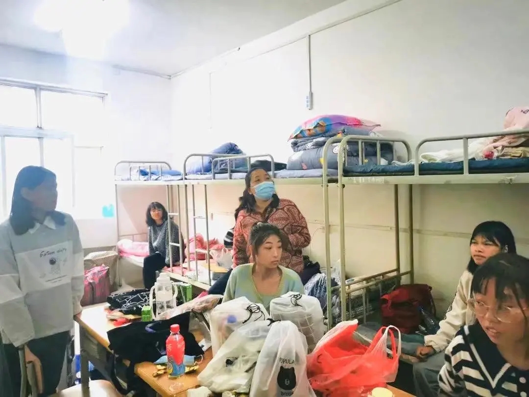 在走访过程中,程书记向新生普及了有关宿舍疫情防控以及违规使用电器等安全隐患方面的知识,提醒新生注意宿舍通风情况、卫生情况与用电安全,对一些还存在不足的地方提出了改进建议。同时她还向学生强调:当前仍处于疫情期间,大家应尽力减少出行,做好个人防护。21级新生辅导员杜老师与同学们进行了亲切交流,同时询问了部分同学目前的家庭经济状况,疫情对家庭收入的影响,并鼓励他们积极地完成专业课的学习,努力提高自身综合实力,在学习之余也应注意身体健康,保持规律的作息,加强锻炼。