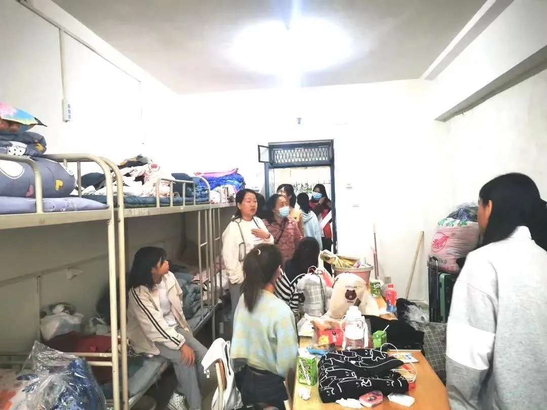 为了解新生对学校住宿的适应情况,帮助新生尽快适应大学生活,太阳成集团tyc9728党委副书记程芬、团委副书记袁泉、辅导员杜慧芳、李琦于10月13日下午6点深入21级新生宿舍,了解新生返校后的生活情况。