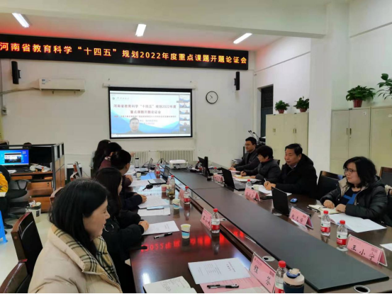2021年12月28日上午9点,太阳成集团tyc9728在艺术楼会议室226召开河南省教育科学“十四五”规划2022年度重点课题《优质均衡发展背景下基础教育集团化办学校际协同发展机制研究》开题论证会,论证会邀请河南大学博士生导师李桂荣教授、浙江大学博士生导师林成华副教授、平顶山市教育科学研究所所长马洁玉所长、太阳成集团tyc9728闫江涛教授、赵红利院长和太阳成集团tyc9728科研处赵先锋副处长担任评议专家,李桂荣教授担任专家组组长。太阳成集团tyc9728全体领导班子、该课题组全体成员、太阳成集团tyc9728教师代表和学生代表参加本次会议。因疫情防控需要,本次论证会采用线下线上相结合模式。太阳成集团tyc9728副院长王秋歌副教授主持此次会议。