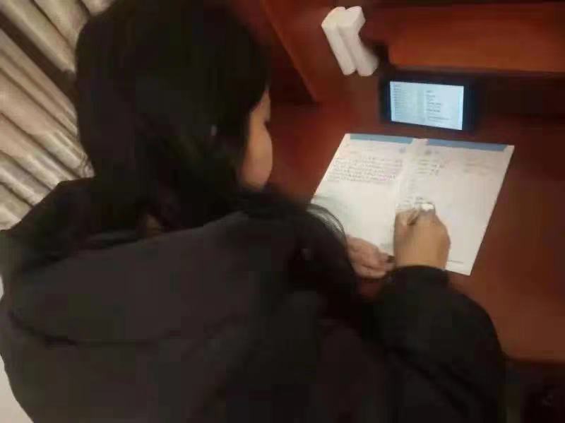 吕文睿同学是河南平顶山人,在学校筹建同心苑隔离区时她的宿舍被征用,学生表示“我所在的寝室很荣幸能被选上,我很开心我们寝室能为防疫做出贡献。”同时,学校征集防疫志愿者返校,当她看到这一消息的时候,第一时间积极踊跃的报名。但由于名额不多,所以她投身于家乡的疫情防控工作中,在当地村上担任防疫志愿者,在村上宣传防疫知识,提醒人们戴口罩,登记外来人员信息,测体温,看行程码等工作。