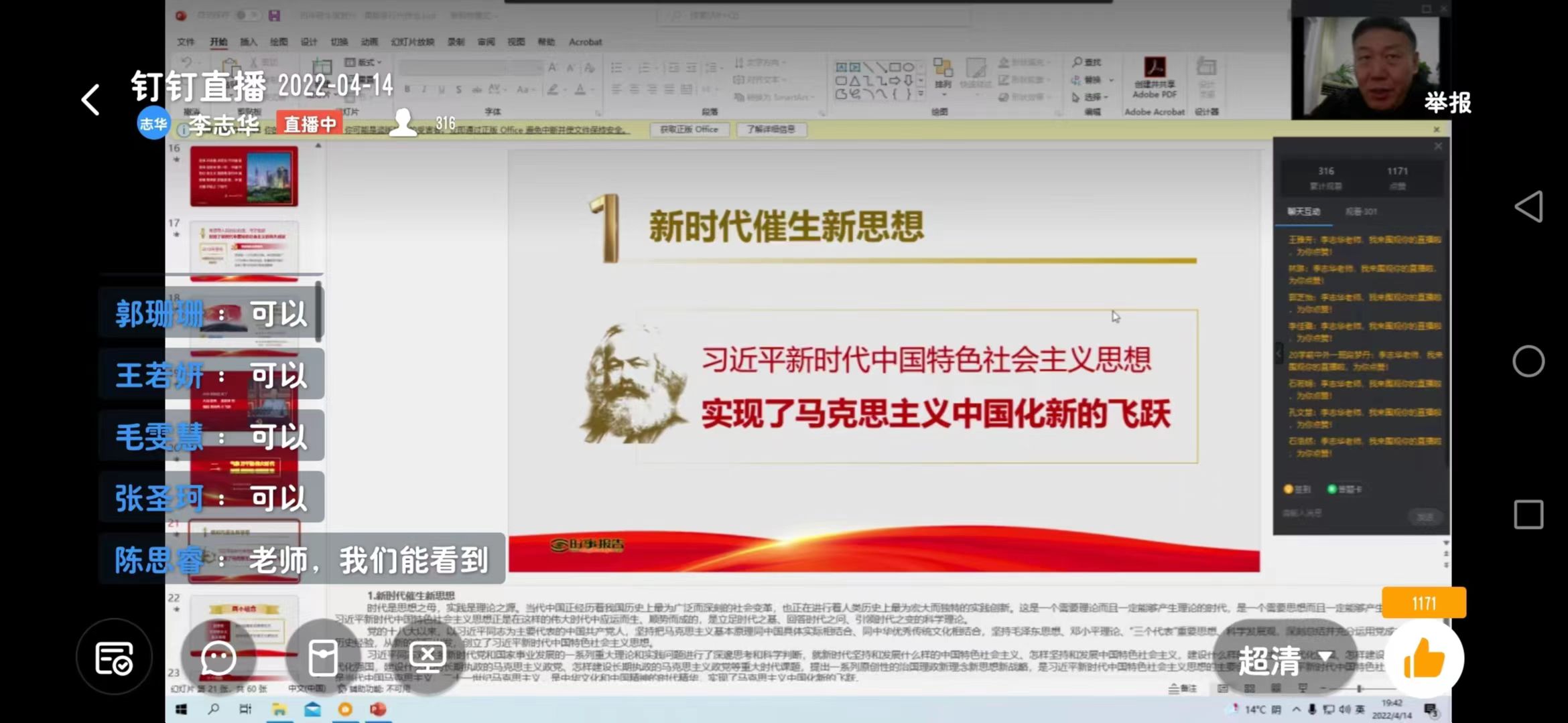 为使当代大学生在中国共产党百年华诞的重大历史时刻、继往开来的重大历史关头,更加认识到中国共产党的伟大成就,按照学校大思政方针,2022年4月14日晚19点,太阳成集团tyc9728党总支书记李志华通过钉钉直播进行本学期《形势与政策》课第一讲。