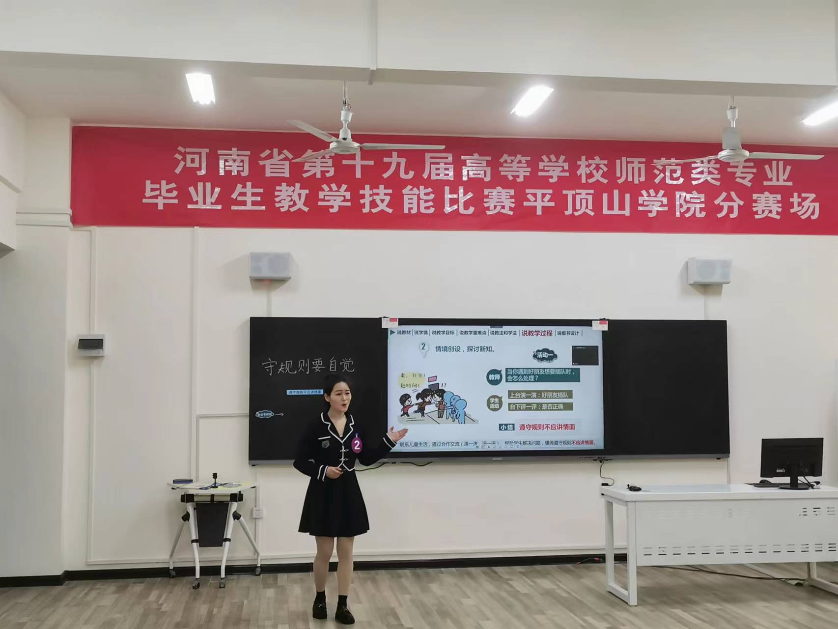 本次比赛我校共有2名参赛选手,邀请5位不同学科专家担任评委。其中小学教育专业赵俊同学参赛小学道德与法治学科;学前教育专业郑晨思同学参赛学前教育(本科)学科。