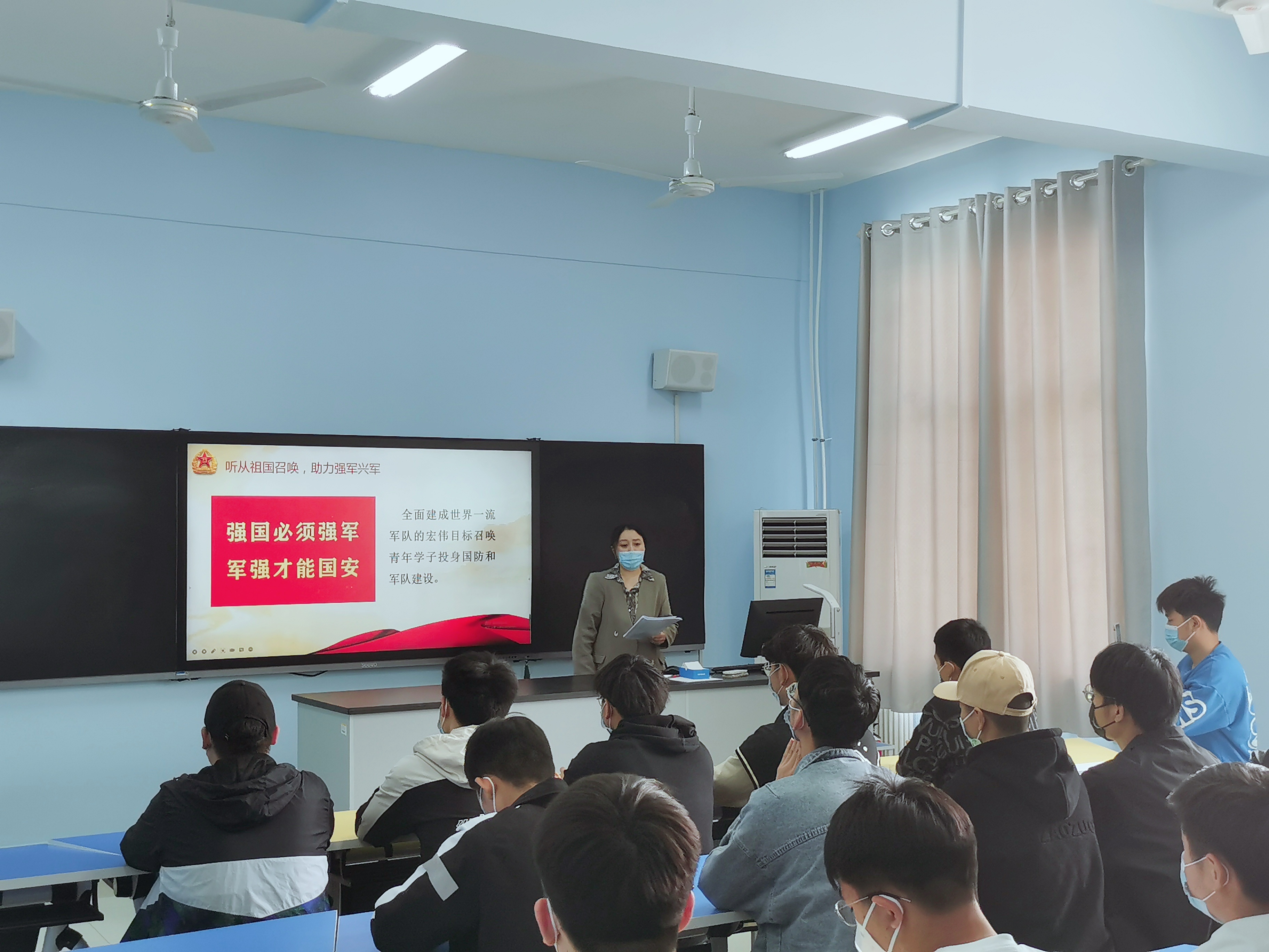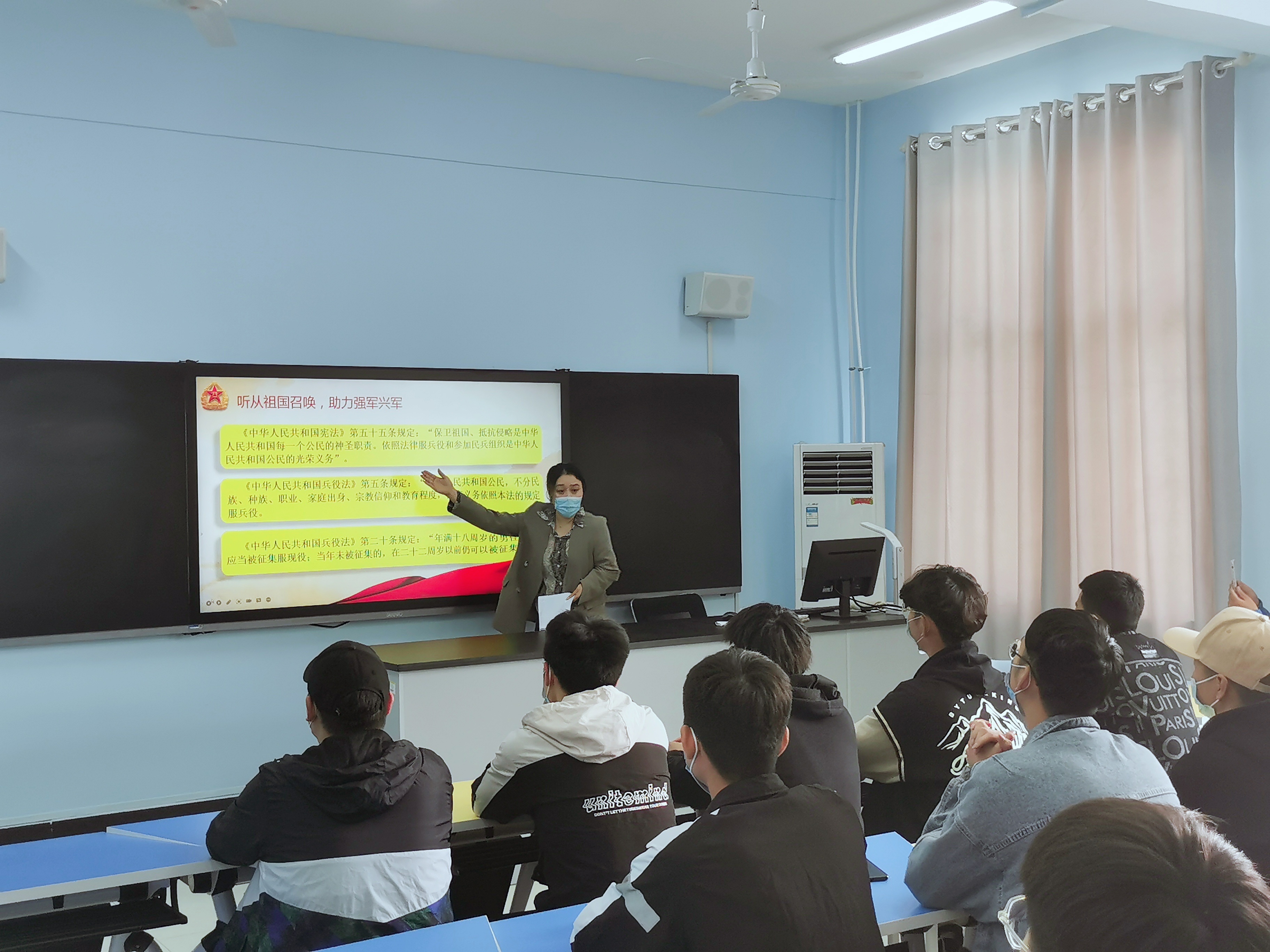 李琦老师主要从听从祖国召唤、助力强军兴军,政策支撑梦想、砥砺成长成才,踊跃参军报国、谱写青春荣光三个方面进行讲述。列举了《中华人民共和国宪法》的相关内容和袁远、项思楚等优秀士兵事例来鼓励太阳成官网学生投身军营、建功立业。