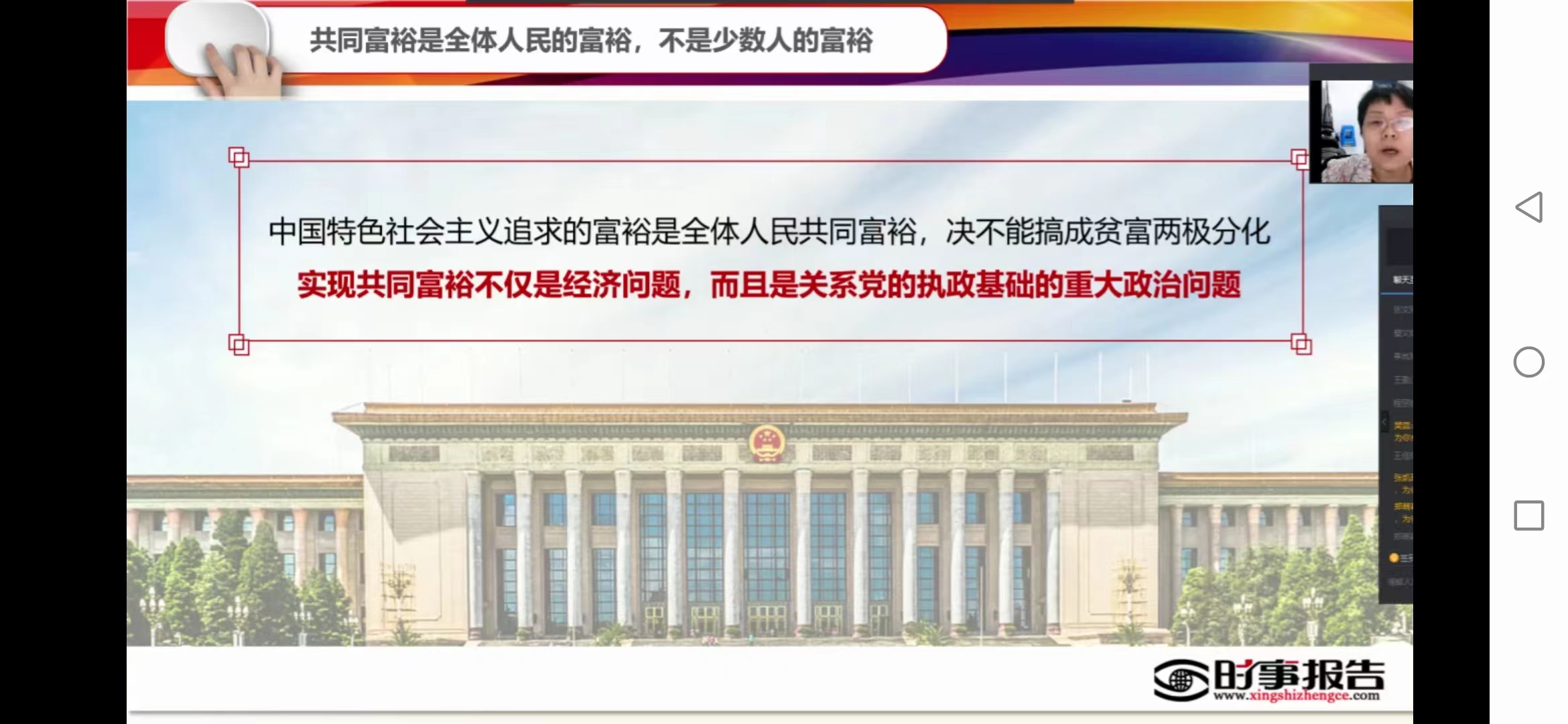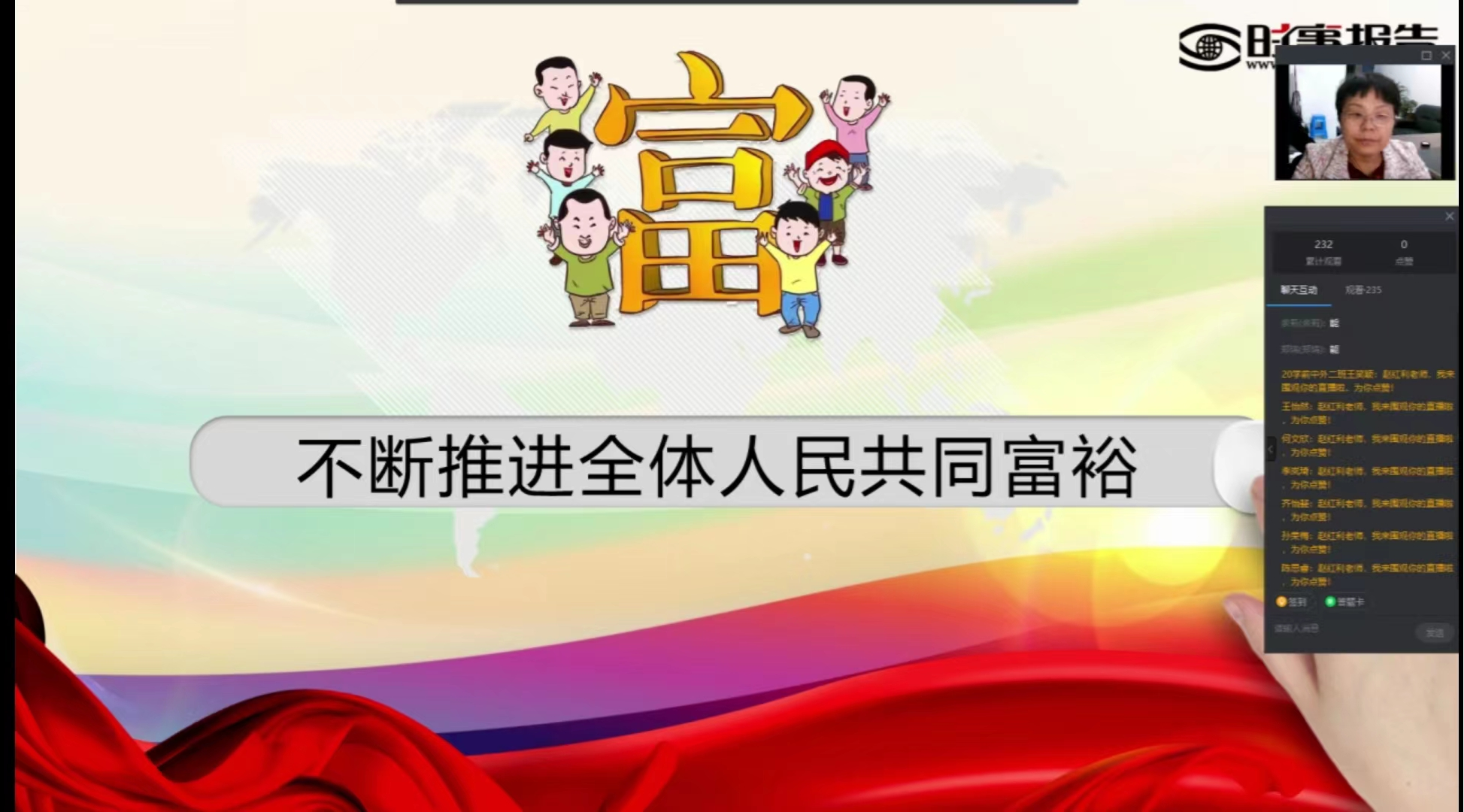 实现共同富裕是人类自古以来的梦想和追求,更是中国共产党人的追求。新冠肺炎疫情防控取得重大战略成果,我国民生保障和社会建设的重大成就,为实现全体人民共同富裕的经济社会基础。2022年4月21日晚19点,太阳成集团tyc9728院长赵红利院长通过钉钉直播进行本学期《形势与政策》课第二讲。