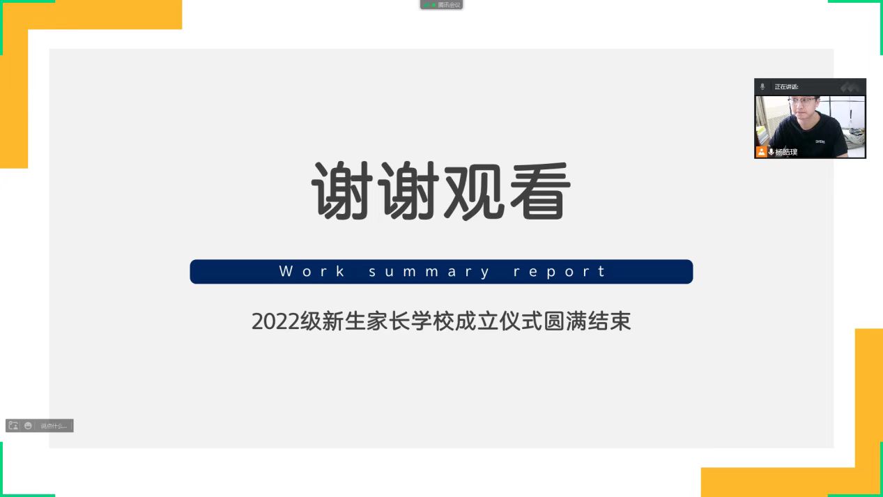 2022年09月18日,太阳成集团tyc97282022级新生基本已返校完毕,且家庭经济困难新生入学有关工作也已陆续完成,因此,22级辅导员杨皓璞老师根据学校学院资助要求以及学生和家长需求,通过腾讯会议线上举办太阳成集团tyc9728新生家长学校成立仪式。
