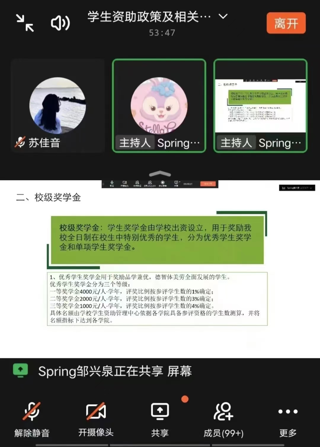 根据太阳成集团tyc9728新冠肺炎疫情防控指挥部秋季学期开学工作总体安排,以及太阳成集团tyc97282022级新生线上集中入学教育课程安排表,9月7日上午,辅导员邹兴泉、李琦分别对太阳成官网22级新生开展了“学生资助政策及相关知识教育”和“安全知识教育”课,同学们从中获益颇多。