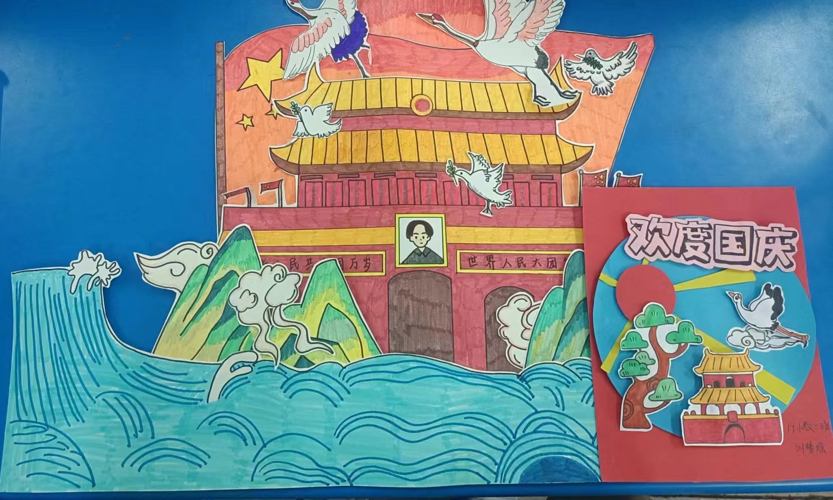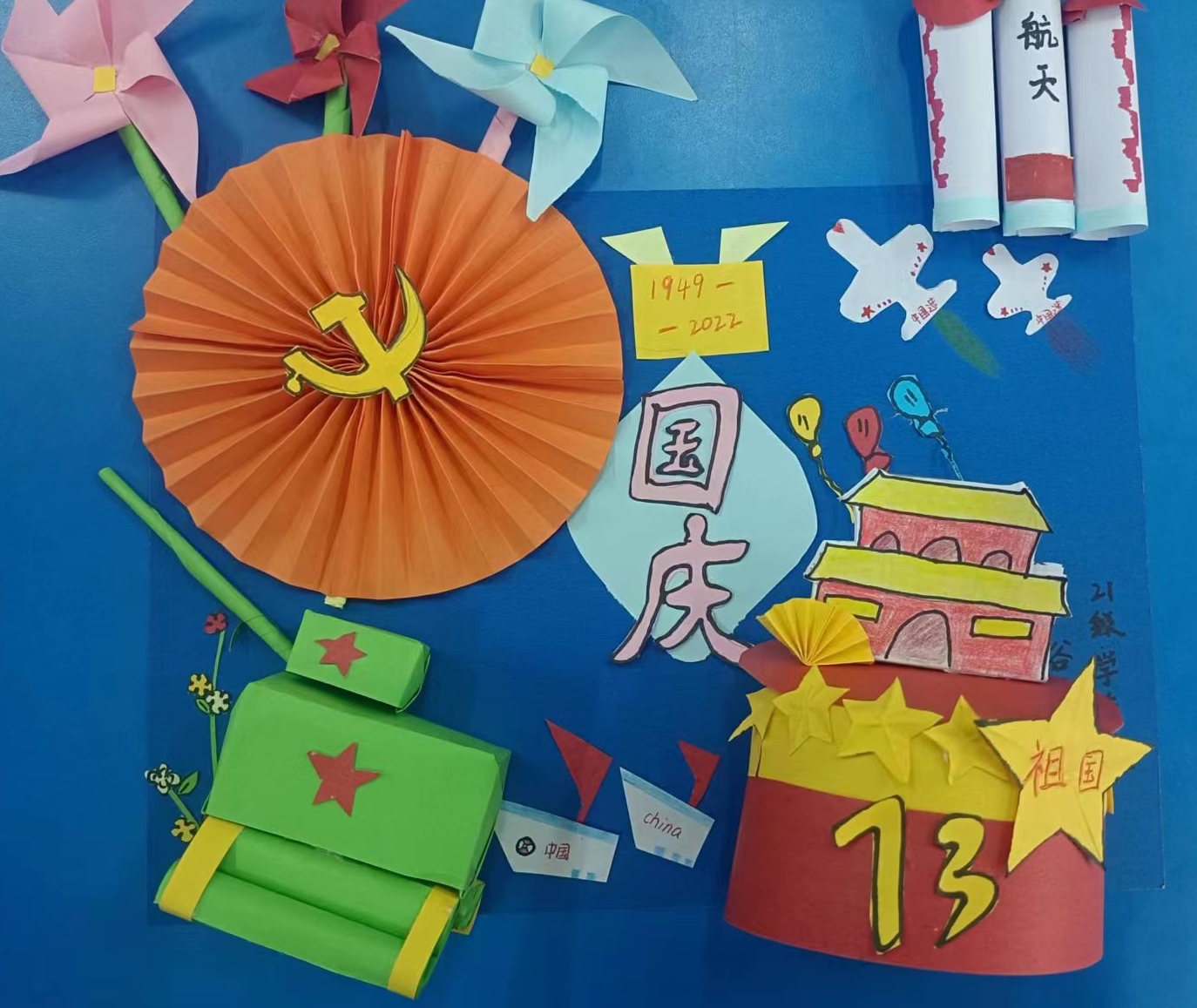 10月11日,活动组织者和负责人进行了活动的评奖。每一份作品的背后都凝聚同学们的奇思妙想和认真努力,也表达了同学们对祖国母亲深沉又热烈的爱。