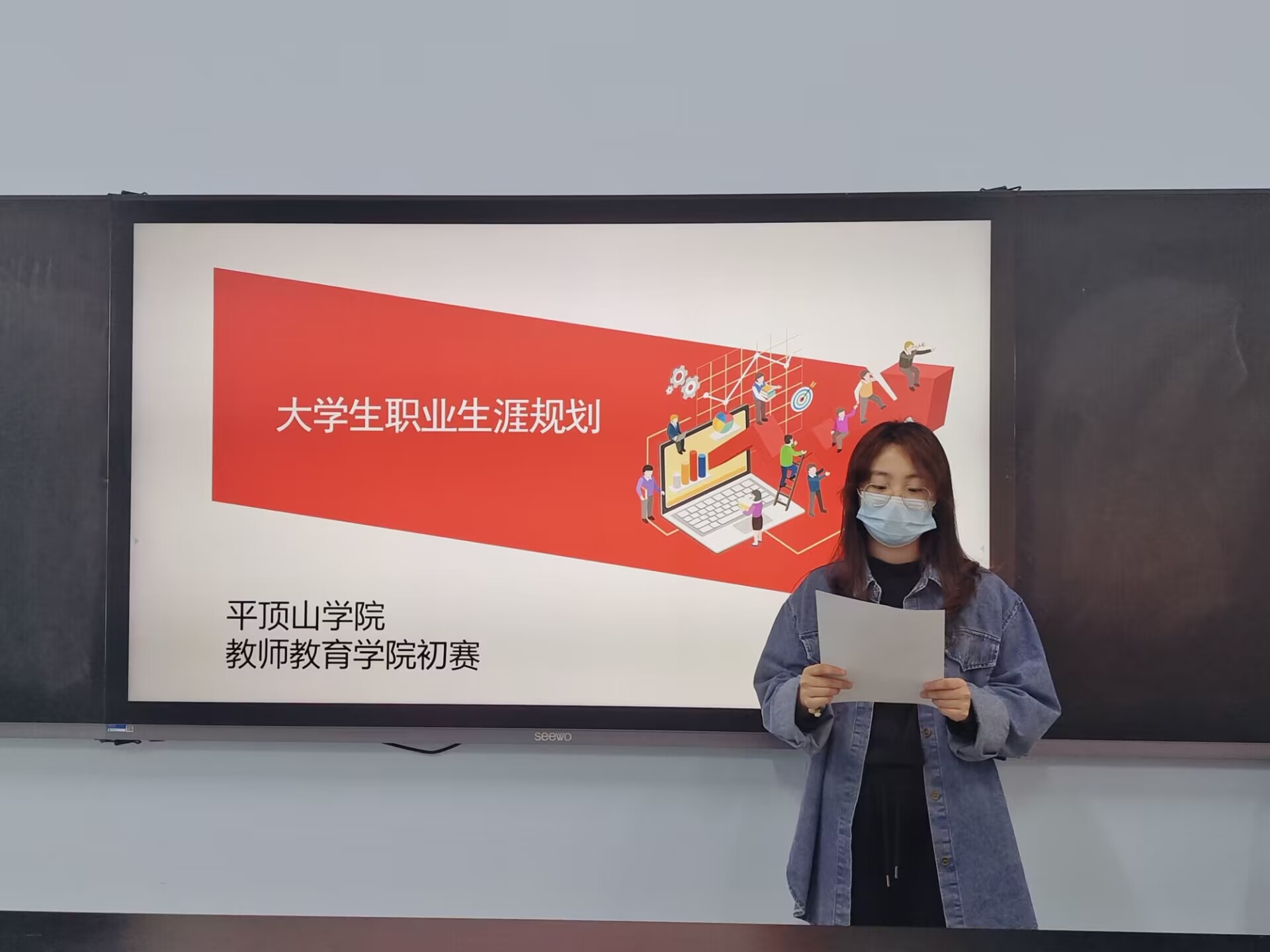 本次初赛共分为PPT展示和评委点评两个环节,来自21级的7名学生参加此次比赛。在PPT展示环节,每位参赛选手灵活运用多媒体,针对自我认知、职业认知、职业决策、计划与路径、评估与调整、职业道德等6个方面,对自己的《职业生涯规划设计书》进行具体形象的陈述。在点评环节,评委老师根据每位选手的特点,进行了详细的点评,最后本着“公平、公正、公开”的原则,根据老师的打分排出名次,并向大家公布。整个大赛的过程紧张但有序,选手们优秀的表现,评委们公正的态度,让比赛在不知不觉间落下帷幕,比赛圆满结束。