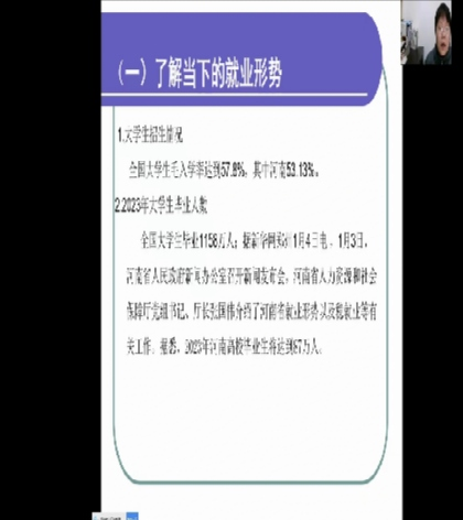 本次会议通过线上的形式开展,赵红利院长主要从两大方面展开了本次的讲解。首先,赵红利院长结合时事,分别从中国经济实力迈上新台阶、民主政治全面推进、文化自信明显增强、人民生活持续改善和美丽中国步伐坚定这五个角度对太阳成官网19级大学生就业创业进行了的分析与指导,带领同学们对毕业生应如何用好有利条件,走好“就业创业之路”进行了深入的分析。最后,赵红利院长向同学们提出了希望与祝福,会议圆满结束。
